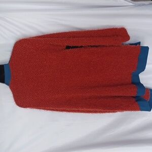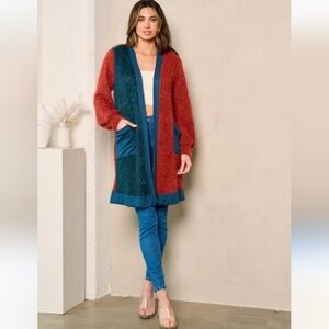 Ces Femme open cardigan, Blue-green & Rust, Sz M