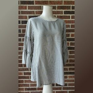 Ces Femne Gray and Ivory Striped Top