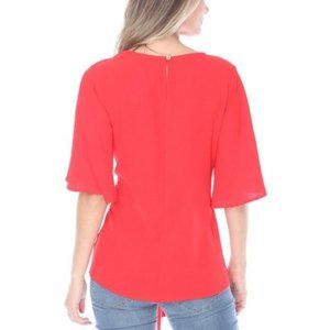 Ces'Femme Red Tomato Women Small Blouse Front Tie Flared Sleeve Scoop Neck Top