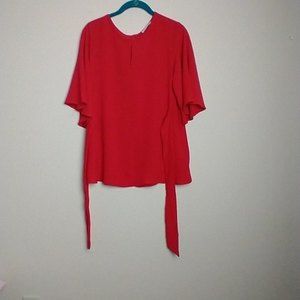 NWT Women Small Red Front Tie Flared Sleeve Scoop Neck Blouse
