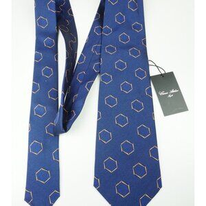 Cesare Attolini Cobalt Blue Lemon Yellow Geometric 100% Silk Tie BRAND NEW