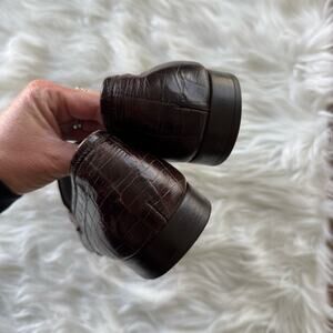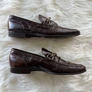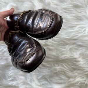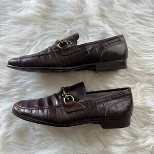 Cesare Paciotti Mens Vintage Croc Embossed Leather Loafers Brown Horsebit Luxury
