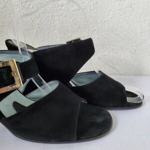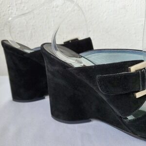 Cesare Paciotti Slides Suede Sz 39.5 Sandals Wedge Heel Buckle Strap Italy $695