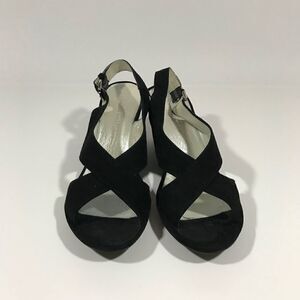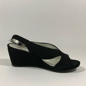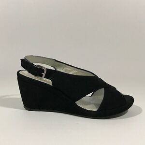 Cesare Gaspari Super Lightweight Black Suede Upper Slingback with Buckle 3" Wedge Heel Rubber Sole