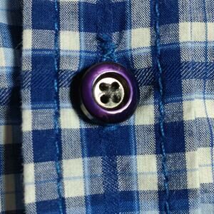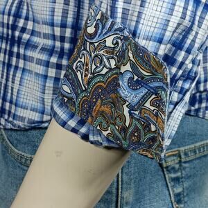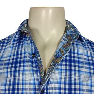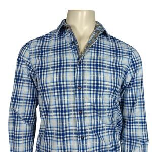 Cesari Italy Plaid Shirt Size Small Blue and White Long Sleeve Paisley Cuffs