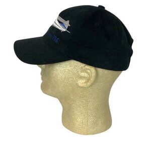 This black baseball cap features a striking embroidered Cessna 195 airplane design. The adjustable strap ensures a comfortable fit for most head sizes.