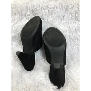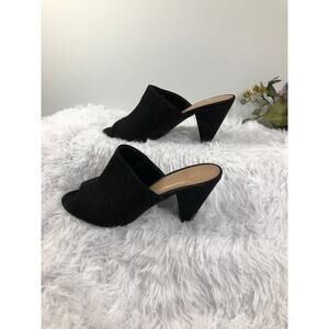 Cest. 1946 Women’s Black Suede Mule Sandals Cone Heel 3” Size 7 Peep Toe Slip on