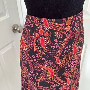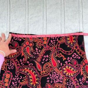 C’est Basic Y2k Midi Skirt in Paisley Print. Size medium. No stretch or elastic at the waist. Perfectly lightweight for warmer months. This Vintage skirt showcases a chic A-line silhouette in delightful pink and yellow hues. Bold and bright. Style with a baby tee and sandals!