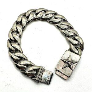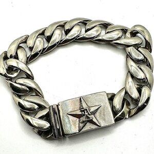 C'est Magnifique Vintage Silver Star Cuban Link Biker BRACELET