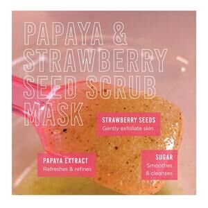 Give delicate skin a quick refresh with this one-of-a-kind scrub facial mask. Designed to hydrate and balance while gently scrubbing away impurities, this unique blend of papaya, sugar and strawberry seeds provides a refreshing treat to the skin.