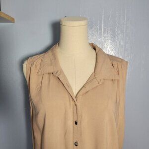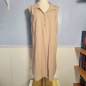 C'est ToI 3XL Light Tan Button Up Sleeveless Casual Travel Summer Shirt Dress