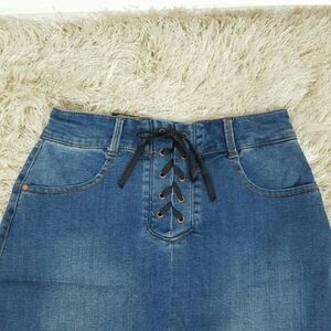 Cest Toi Black Label Women's Denim Mini Skirt with pockets Raw Hem