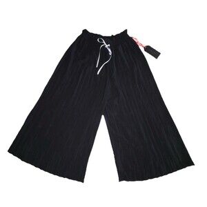 C'est Toi Black Pleated Wide Leg Culotte Pants High Rise Elastic Waist Small NWT