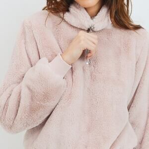 C’est Toi Blush Pink Faux Fur Quarter Zip Pullover Plus Size Sweater 2X