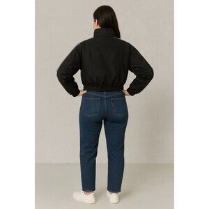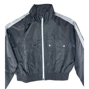 Cest Toi Cropped Black Nylon Jacket With Reflective Stripes & Zippered Front M