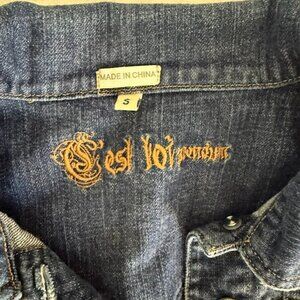 C'est Toi Premium Cropped Jean Jacket - Womens Sz Small Jewels
