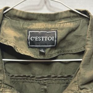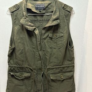 C’esttoi Women’s Vest Green Size Large 100% Cotton Full Zip Pockets