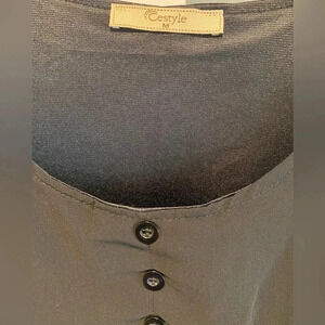 Cestyle Layered Black Holiday Blouse Sheer Sleeves Fold Up Garter. EUC Women’s M