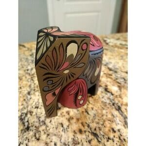 Ceylon Wooden Elephant Carved 3" Figure Hand Painted PW Home Decor Statue