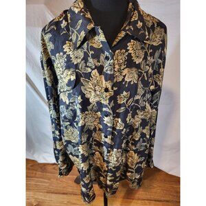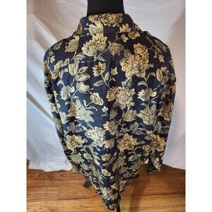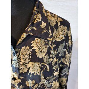Cezar Men's 100% Silk Button Up Shirt sz XL Black Floral L/S Sleeve Read