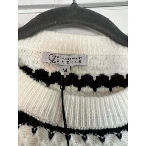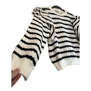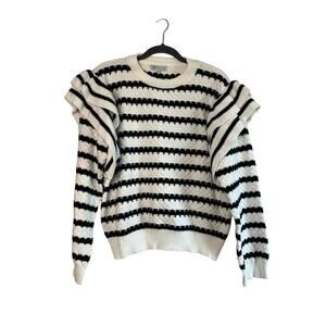 Cezele White/Black Stripe Ruffle Trim Sweater Sz M