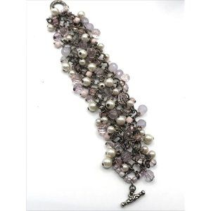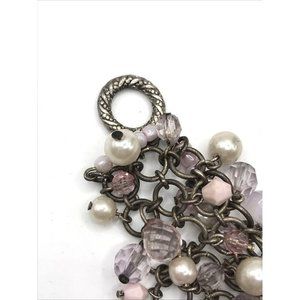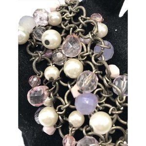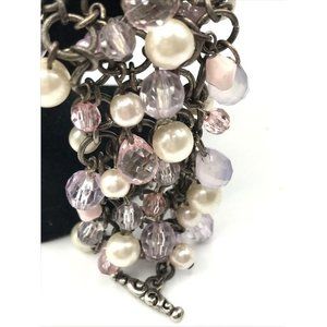Cha Cha Ornate Jeweled Chain Circle links Faux Pearls Crystals Pink Bracelet 7"