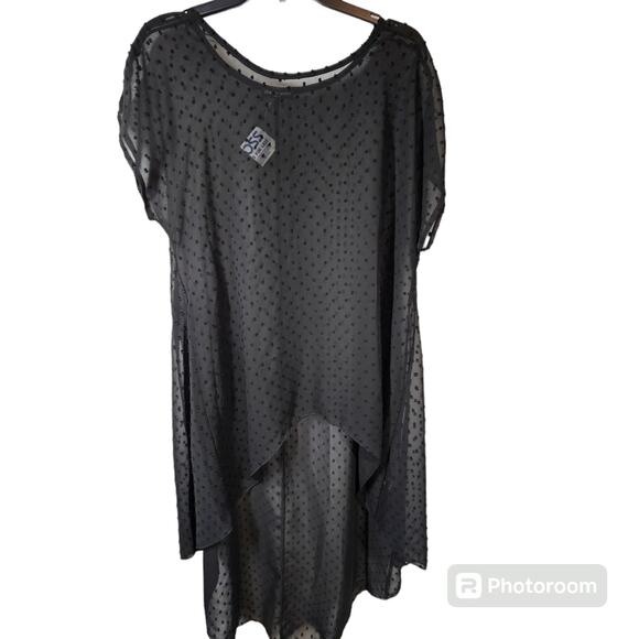Cha Cha Vente Black Sheer High-Low Swiss Dot Swimsuit Coverup Women's Size S