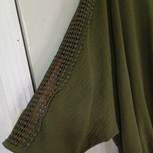Cha Cha Vente Blouse Crochet Sleeve Detailing Elastic Hem Olive Green 3X Womens