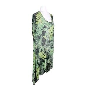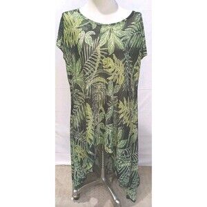 Cha Cha Vente Dress Women 3X Black Green Tropical Knit Coverup Mini Casual