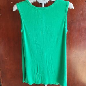 A cute green sleeveless shirt by cha cha vente in size M. Shirt is 30 inches long and flares at the bottom.