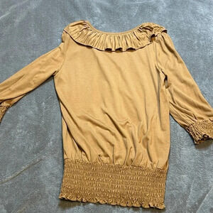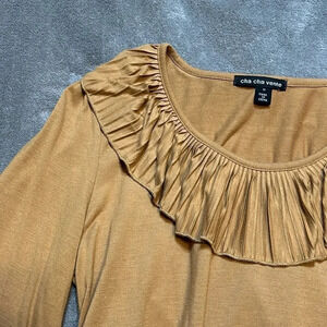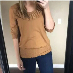 Cha Cha Vente Ruffle Shirt | Mustard | Camel Color | Ruffles | Shirt with Ruffle