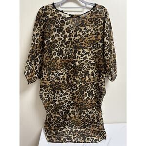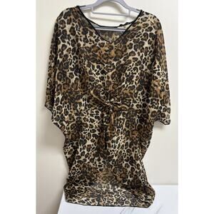 Cha Cha Vente Sheer Leopard Print Tunic Blouse Women's Medium Twist Front