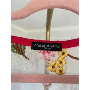 Cha Cha Vente Valentines Peplum Top Mesh Fairycore Cottagecore Romantic Floral Embroidered