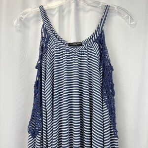 Cha Cha Vente Women’s Cold Shoulder Lace Trimmed Blue/White Striped Top M