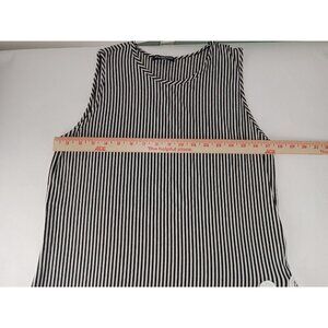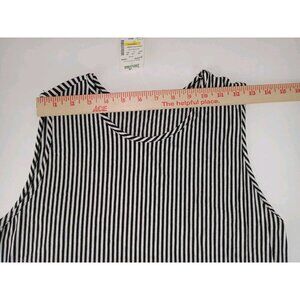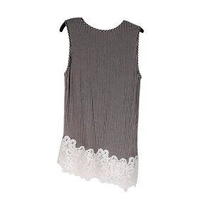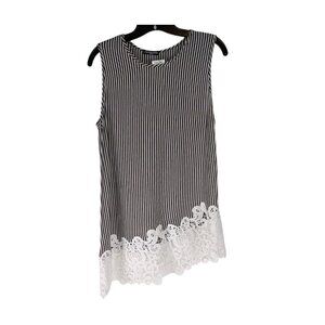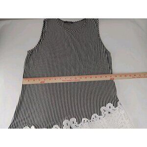 Cha Cha Venti Women's Black White Asymmetrical Stripes Embroidered Top size L