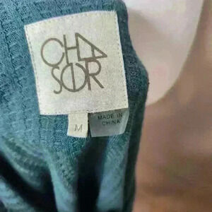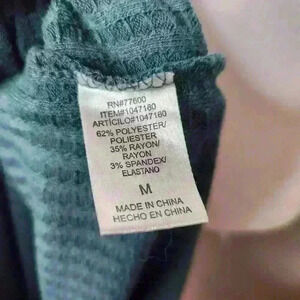 Cha Sor women's forest green long sleeve thermal top size medium. Buttons on wrists. Has a really small spot on the front. May come out with a soak. Measurements are approximate and taken flat.