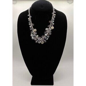 Cha-Cha Necklace Silver-tone Grey Colored Beads Chain Chunky Statement