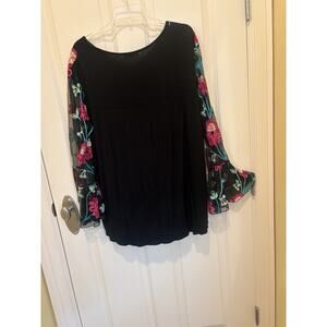 Cha-Cha Vente Women's X-Large Embroidered Floral Free Flowing Top
