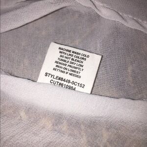 semi sheer bright white with 3/4 length sleeves and uneven hem. ❤️ very versatile!! Could be worn with dress pants or would be super cute with jeans or shorts