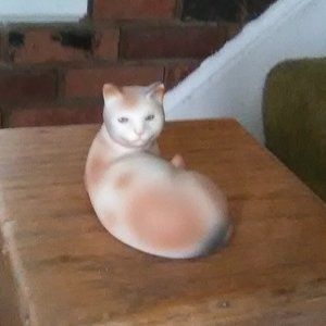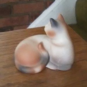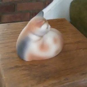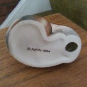 Vintage 1984...Calico Collectible Cat ..."Cha-Cha"...by AVON...bisque porcelain...measures 2.5" high x 2 3/4" wide x 2" deep...used condition.