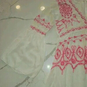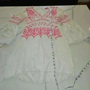 Chach Womens Boho Long Bell Sleeves Embroidered Dress White Size Large
