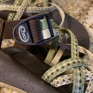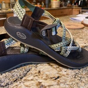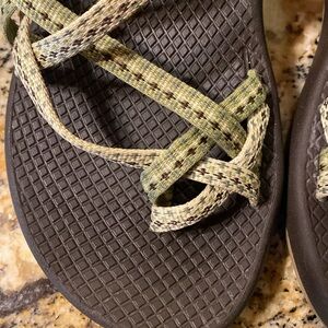 Green, women’s size 7 Chaco with toe strap. Perfect condition, worn very little