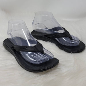 Chaco Black Leather Flip Flops Women's 8 Perfect for Summer Time. In Great Condition. Bin 7139