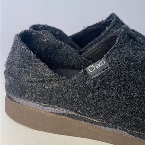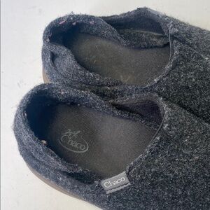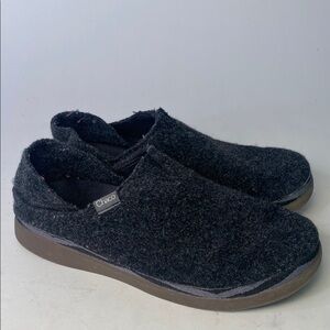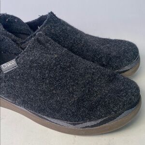 Comfortable black wool mules. Slip-on design. Durable sole.