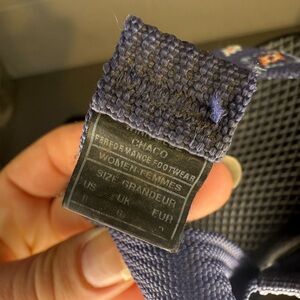 Experience the perfect blend of style and comfort with Chaco sandals, featuring a sleek black and blue design. These sandals boast durable fabric straps and a casual summer style, ideal for beach outings or everyday wear.