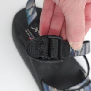 Chaco Blue & White Striped Z/2 Classic Strap Sandals by Artist Sarah Uhl- Men 8