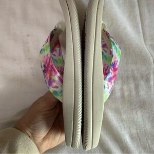 Like new tie dye flip flops. Sandals are in excellent condition.