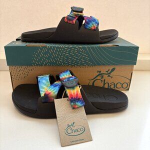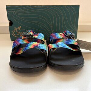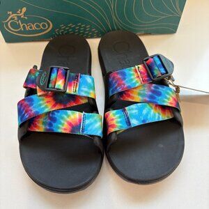 NEW Chaco Chillos Slide Sandals Strappy Slip-On Black Dark Tie Dye Size 7 NIB