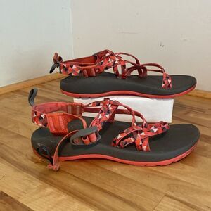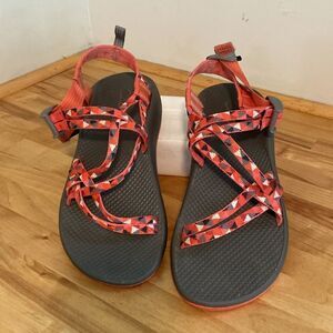 Chaco Coral & Navy Geometric Print Slide On Athletic Kids Sandals Size 6