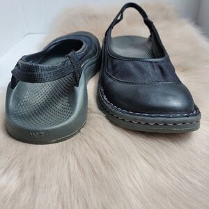 Chaco Devotee Womens Black Leather Canvas Slingback Closed Toe Sandals Shoes Size 7 Good Condition See Pictures For More Details.